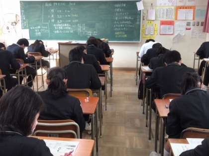 三年生にとっては中学校生活最後のテストが行われました。「これで最後、がんばろう」と感慨深げに話す生徒が多くいました。教科は理科、美術、保健体育が行われました。
