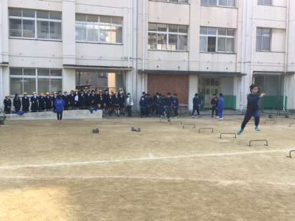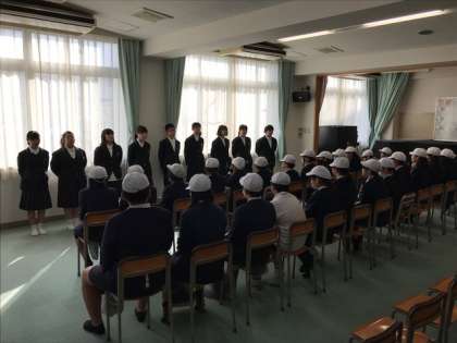 多目的室での学校紹介の後は、小学校のクラスごとに分かれて、生徒会役員が案内して各部活動を見学して回りました。