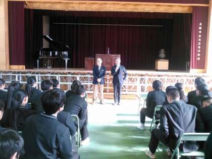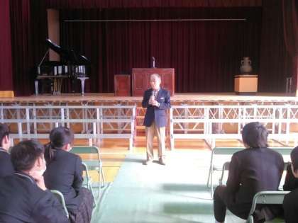 本日、第69期生の同窓会入会式が行われました。本校同窓会顧問の水谷様からお話をいただきました。皆さんも本校OBの仲間入りです。