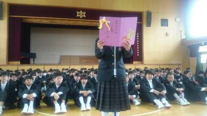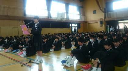 始業式と着任式の後、新入生と在校生の対面式が行われました。