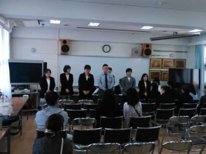 写真上から、PTA新役員紹介、新年度予算審議中です。