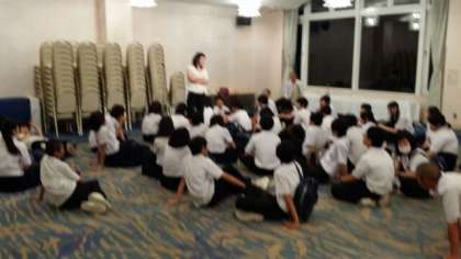 美ら海水族館の見学を終え、ホテルで学級活動をしました。