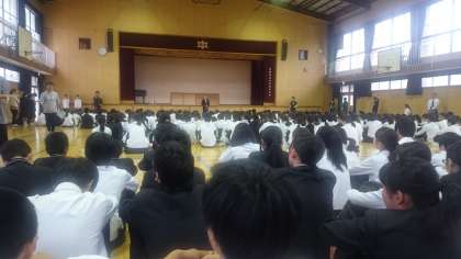5月7日、体育館で全校集会が行われました。まず、今日は大阪市の「いじめについて考える日」なので、学校長からの話がありました。いじめを許さない、学級、学校にしていきたいものです。