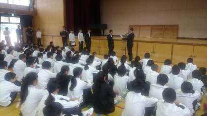 続いて、今年度、前期の生徒会と学級委員の認証式がありました。学校のため、学年のため、学級のためにしっかり役割を果たしてください。