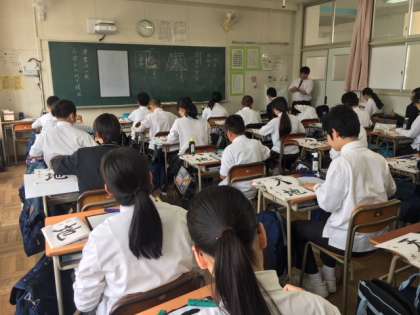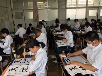本日2限目、国語科の研究授業で1年1組は、書写の授業を行いました。