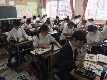 静かな雰囲気の中で、落ち着いて書写に取り組んでいました。