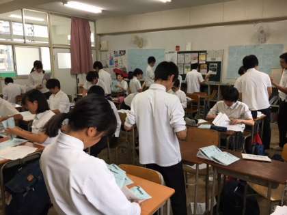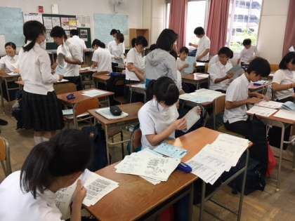 本日放課後、各クラスの班長が集まり、班の人数分のしおりを作成しています。