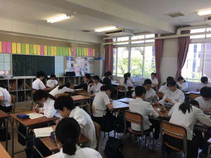 修学旅行では班別で動くことが多いです。周りに先生がいない状態で長崎市内をまわったり、次の予定を把握して自主的に行動する場面がたくさんあります。来週の今日はもう修学旅行の新幹線の中、みんな修学旅行の成功に向けてまじめに取り組みに参加しています。