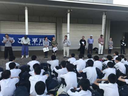 生徒代表の挨拶、学校長挨拶、地区代表挨拶です。