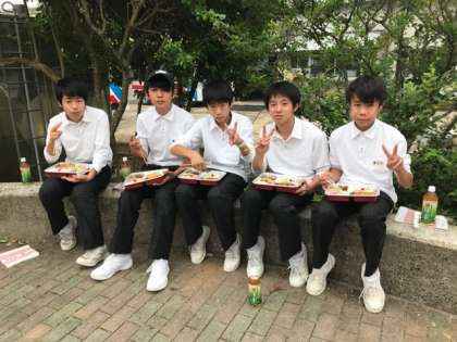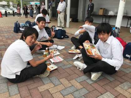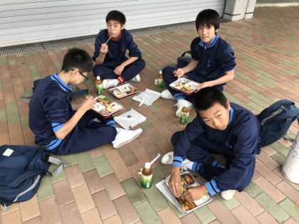体験活動から帰って来て、お弁当を食べています。