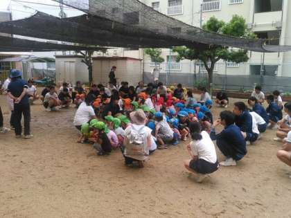 本日のふれあい保育では、大浪保育所の津波に対する避難訓練のお手伝いもしました。3年3組のみんなが園児とペアを組み、手をつないで大正東中4階校舎まで引率をしました。3組の皆さんが、普段以上にお姉さん、お兄さんに見えました。