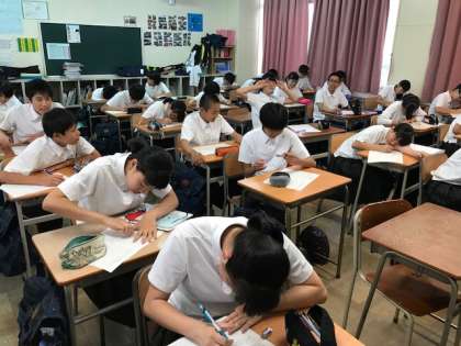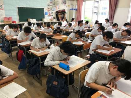 3年生は本日も修学旅行に関する取り組みを行いました。5限は修学旅行を振り返ってまとめの感想や反省を書いています。6限は、被爆体験談を聞いての感想をまとめます。