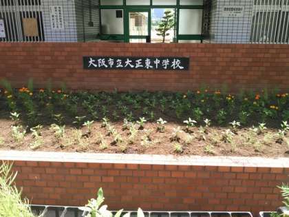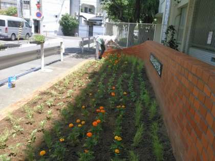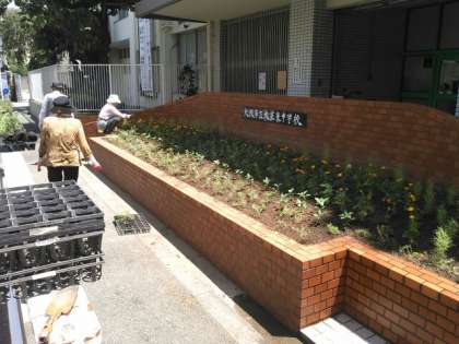 本校元気アップ事業の一環として、地域のボランティアの皆さんに玄関前の花壇の緑化作業をしていただきました。