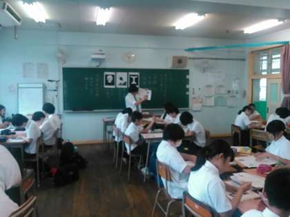 大阪市教育センターから指導員の先生に来ていただき、授業後、指導していただきました。