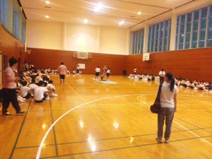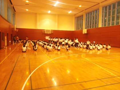 18:30 キャンドルファイヤーのため体育館に集合しました。