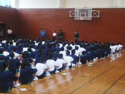 6:50 体育館でラジオ体操と朝の集いを行いました。