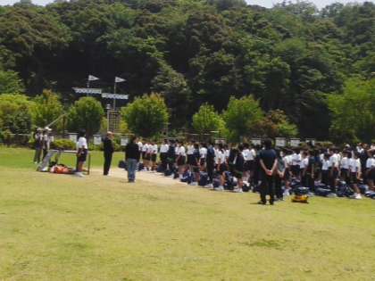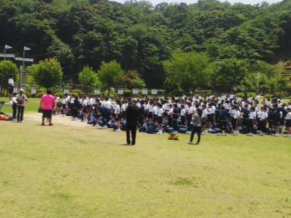 12:30 芝生広場に集合 退所式を行いました。