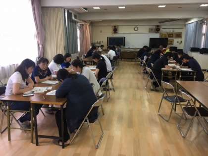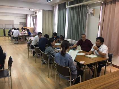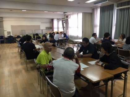 放課後、研究授業を行った教員を中心に7つのグループを作り、授業についての協議を行いました。