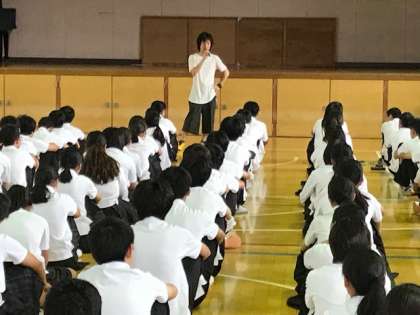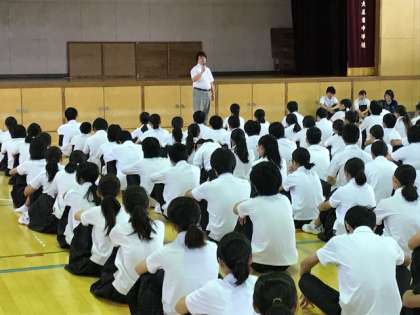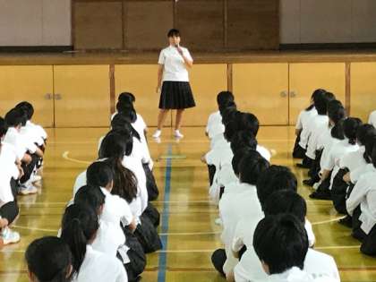 本日の学年集会は、生徒会役員さんから昨日の「ノーチャイムデー」を振り返っての反省と、先生からは本日実施される「租税教室」と、2学期に実施される「高校からの出前授業」について連絡がありました。