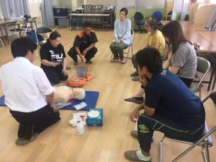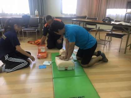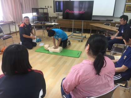 大阪市消防局が作成したDVDを鑑賞しながら実技指導を受けました。有意義な研修となりました。
