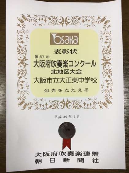 本日開催された「大阪府吹奏楽コンクール 北地区大会」の結果を報告させていただきます。