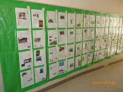 6月6日(金)の遠足での調べ学習を、班新聞にして、3階エレベーターホールに展示しています。