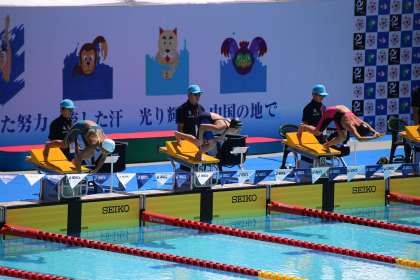 8月17〜19日に岡山県の「児島マリンプール」で開催された標題の大会に本校3年生の谷川亜華葉さんが、400m個人メドレーと200m個人メドレーの2種目に出場しました。