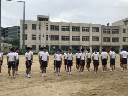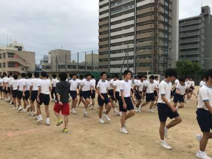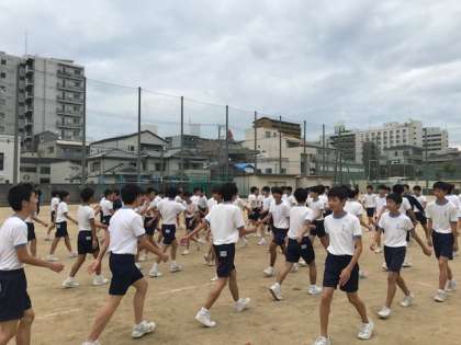 6時間目に5クラス合同では初めての外での練習を行いました。