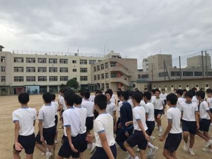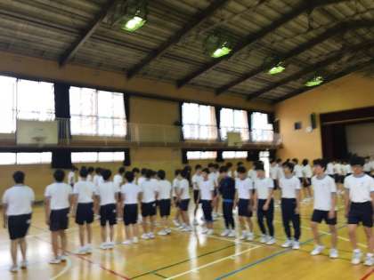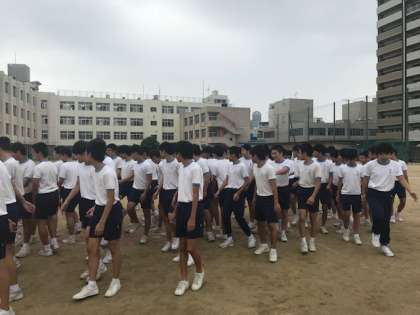 3年生男子は5限目運動場、6限目体育館で集団行動の練習を行いました。