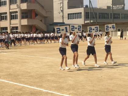 体育大会全体練習〜入場行進2年〜