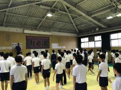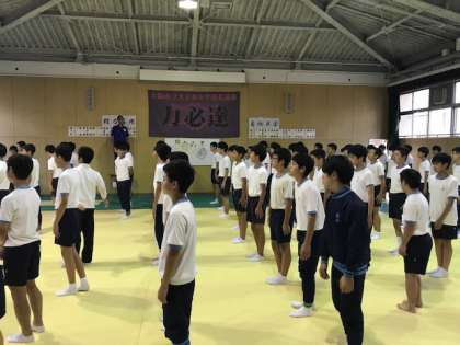 男子は武道場で細かい動きの確認です!