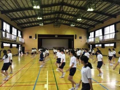 女子は体育館で通し練習です。