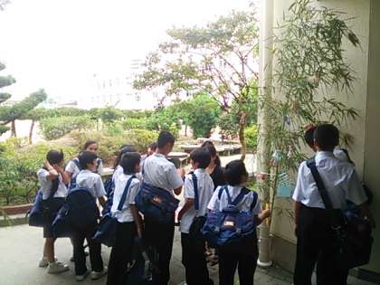 下校途中で、多くの生徒たちが短冊に願を書き笹につけました。