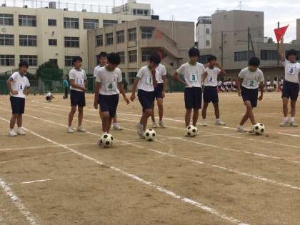 男子キックボールリレーです。