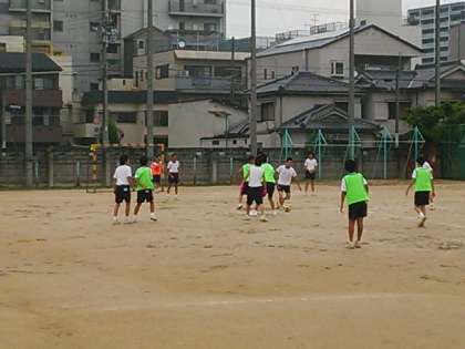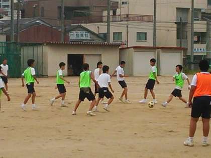 男子は、運動場でサッカーです!