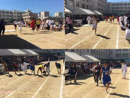 部活動対抗リレーです。教職員チームも一緒に走りました。