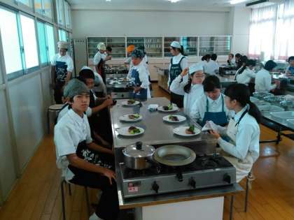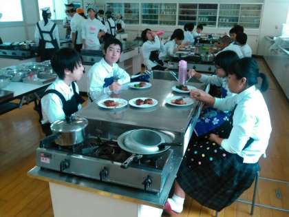 さあ、今日も完成しました。お麩の効果はどうでしょうか。各班ごとに、おいしくいただきましょう。