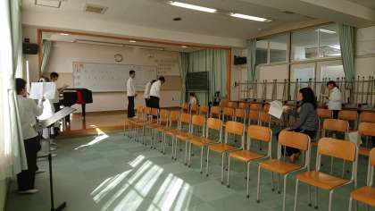 1年生の演劇では、それぞれの立ち位置や舞台への入り方を細かくやっていました。セリフも覚えて、少しずつ形になってきていると思います。どんな劇になるか楽しみです。