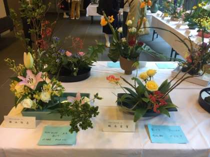 ステージ発表と展示発表が同時に行われ、本校の茶華道部も生花を展示しています。