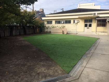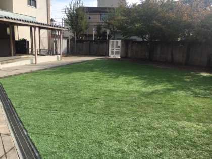 武道場前の空き地に、中池と同じ人工芝を設置しました。部活などで、トレーニングなどをする時により快適になればと思います。人工のものですから、上を歩いても問題はありませんが、自転車などはできるだけ芝を避けて駐輪するようにお願いします。