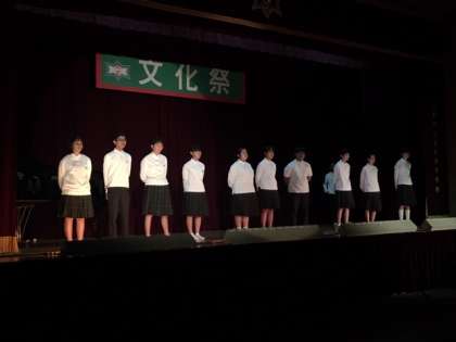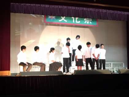 写真は上から3年有志劇、合唱部、1年有志劇の様子です。