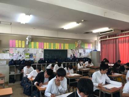 大阪市教育委員会の事業の一つ「英語イノベーション」で、中学生の英語力を測るテストを3限目に実施しました。