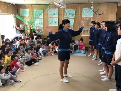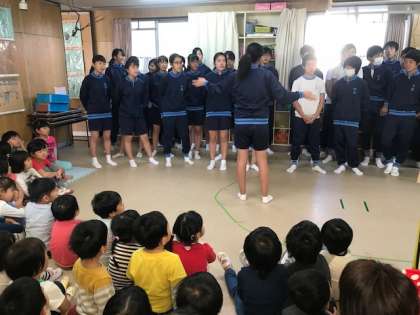 文化祭で発表した合唱を披露した後、各クラスに分かれてクイズやハンカチ落としなどをしました。