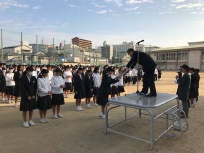 本日、全校集会で11月3日に開催された大会の賞状伝達が行われました。