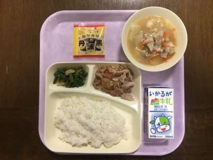 豚肉のしょうがじょうゆかけ けんちん汁 三度豆のからしじょうゆあえ 米飯 牛乳