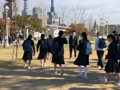 到着後、クラス写真を撮り、班別にフィールドワークに出発しました。