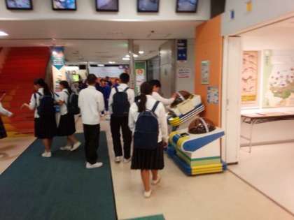オリエンテーリングも後半になりました。写真は、科学館での様子です。
