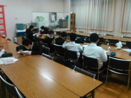 本日より、期末テスト一週間前になりましたが、放課後にミーテイングルームにて定期テスト前自主学習会が始まりました。参加している人は、元気アップ学習ボランティアの方と、熱心に勉強していました。