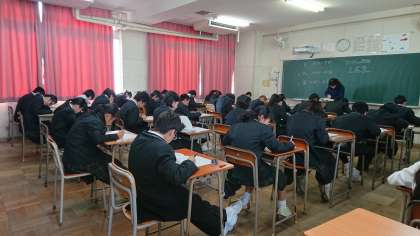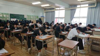 本日は、期末テスト一日目です。朝からクラスの生徒たちでお互いに復習をし合っていました。