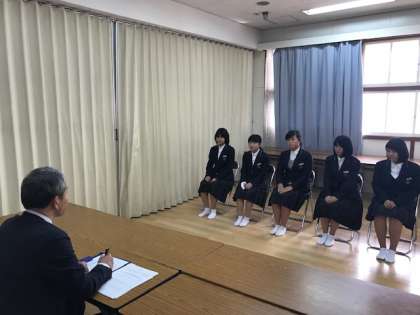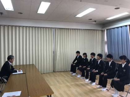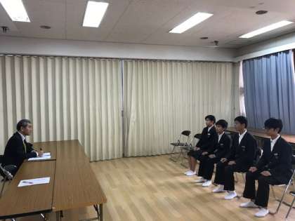 高校入試での面接に備えて、校長先生とグループ面接を行いました。